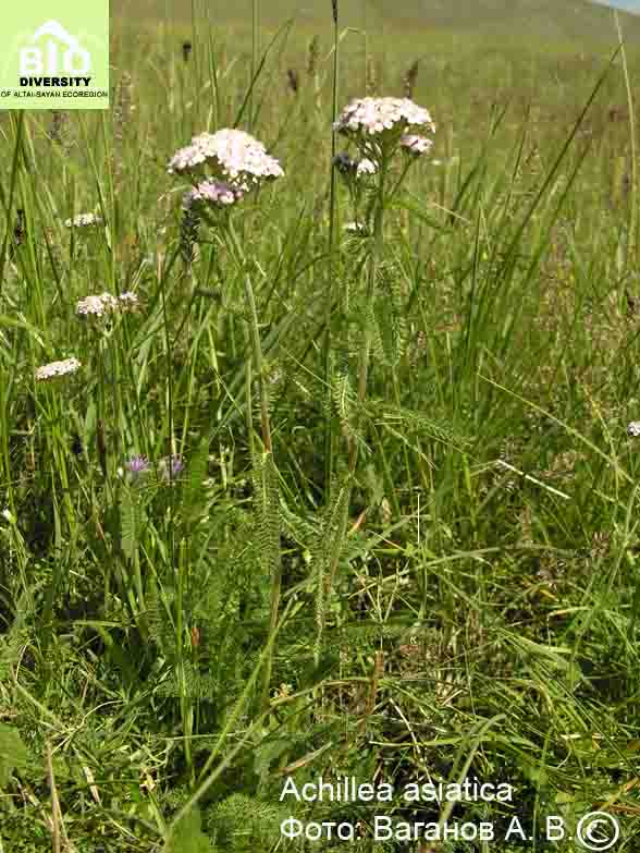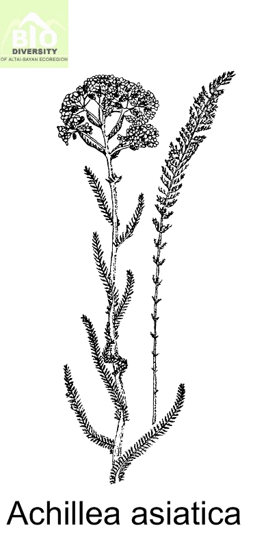 Achillea asiatica Serg., 1946 в Сист. зам. Герб. Томск. унив, 1(72):6. - Тысячелистник азиатский.