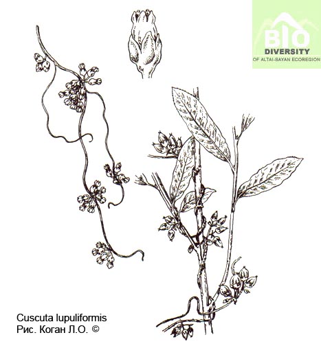 Cuscuta lupuliformis Krock. 1787, Fl. Siles. 1 : 261, tab. 36. – Повилика хмелевидная.