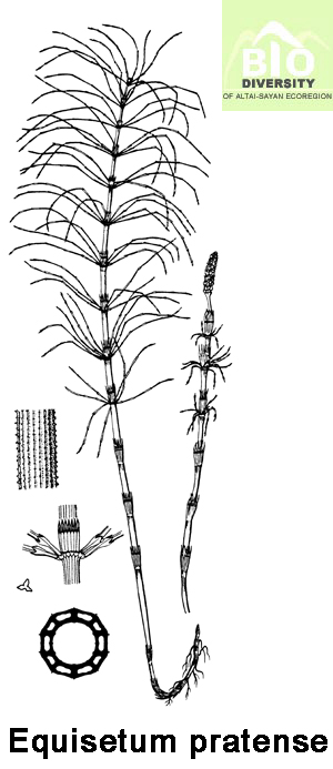 Equisetum pratense Ehrh. 1784, Neues Hannover Mag. 22 : 138. - Хвощ луговой.