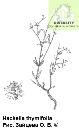 Hackelia thymifolia (DC.) Johnston 1940 in Journ. Arn. Arbor. 21: 54 – Гакелия тимьянолистная.