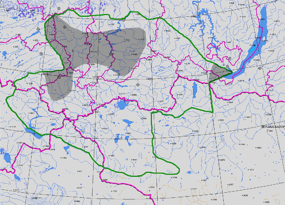 NATURAL HABITAT в верхов. р. Эликманара около оз. Каракола, в бас. р. Лебеди по ее притоку Чуе, в дол. р. Уйменя, в низов. Чулышмана около уст. р. Башкауса, в дол. Черного Иртыша, хр. Теректинский окр. д. Тюнгур.