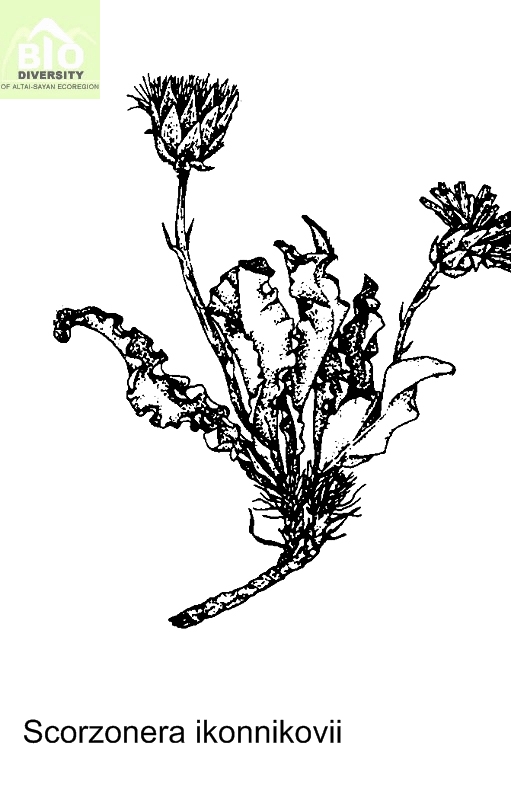 Scorzonera ikonnikovii Lipsch. et Krasch., 1935 в Липшиц. Фрагм. моногр. Scorzonera, 1:109. - Козелец Иконникова.