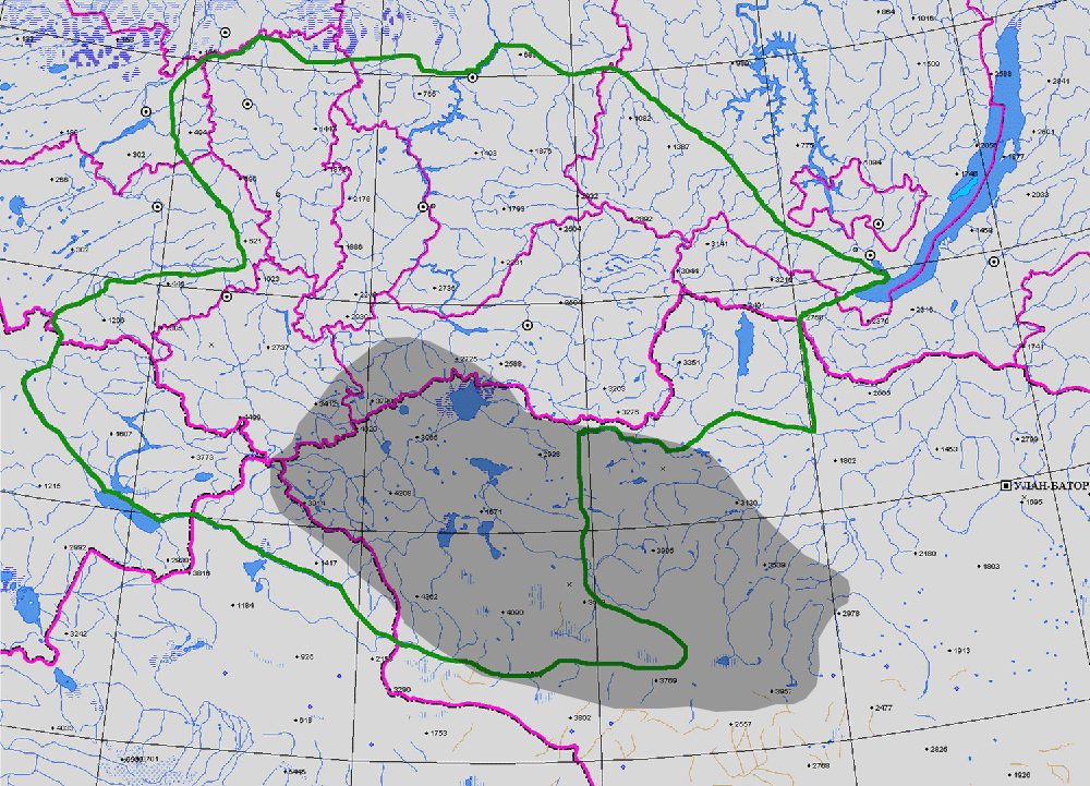 Респ. Алт., Респ. Тыва, Зап. Монг. (1, 2, 3), Общ. распр.: Сев. Монг., Вост. Сиб. (1)