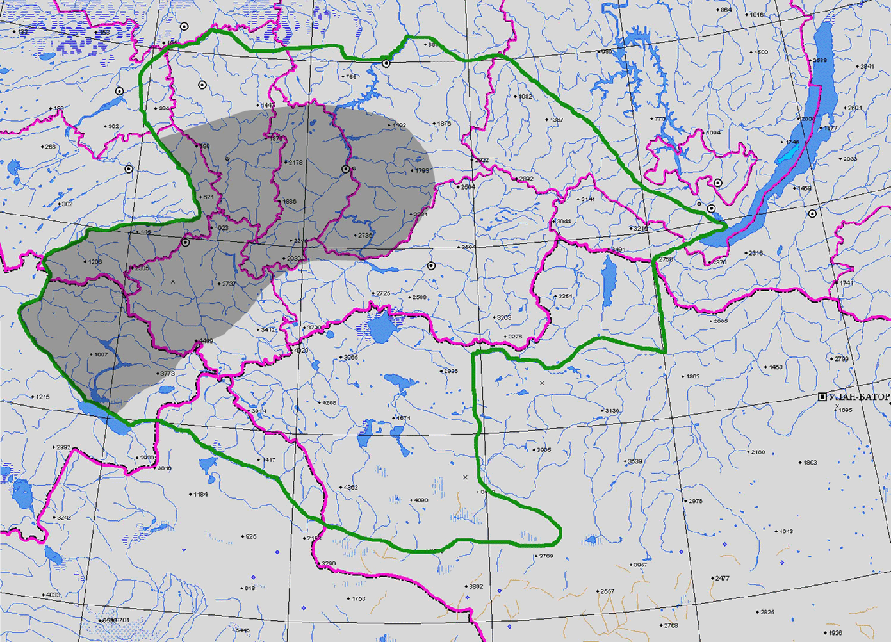 ГЕОГРАФ. АРЕАЛ: Чергинский хр., Колыванский хр., хр. Салаир, З. Танну-Ола, Минусинская контловина, Кузнецкая котловина, Предалтайская равнина (1).
