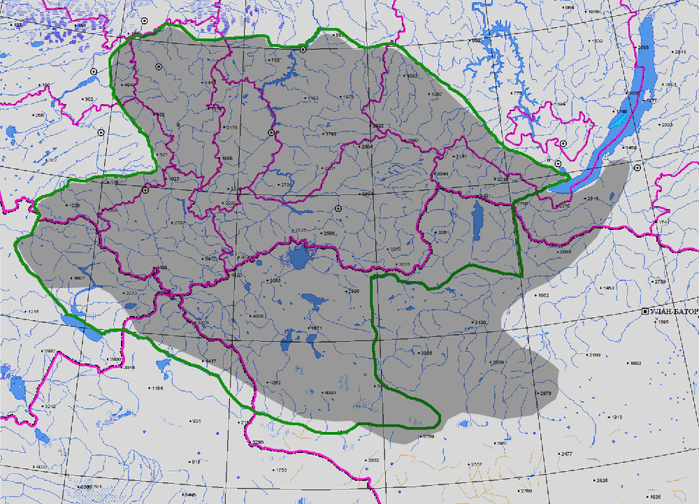 ГЕОГРАФ. АРЕАЛ: Плато Укок, хр. Тигирекский, хр. Теректинский, хр. Колыванский, хр. Тункинский, котловина Курайская (2, 3).