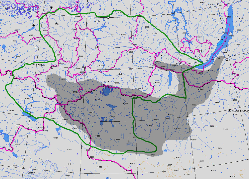 РАСПРОСТРАНЕНИЕ Респ. Алт., Респ. Тыва, Респ. Бур. (1, 2, 4). Общ. распр.: Сев. Америка, Гренландия, Сканд., Росия (Сев. Урал, Вост. Сиб., Дальн. Вост.), Монг. (1, 3).